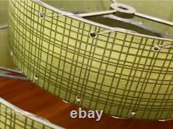 Each of our custom lamp shades is made to order, allowing you to choose your preferred size and fitter type. The fitting depicted is a standard spider washer, compatible with most harps, but we can easily accommodate a Euro washer style or a pendant fitter to suit your unique needs. Our tiered lamp shades stand out with a minimum of 1/2 overlap between each tier, avoiding the hollow appearance often found in less expensive options. While we specialize in vintage, retro, and atomic-style lamp shades, we also craft contemporary custom drum shades to complement any decor. For additional accessories, such as harps, swag kits, and adapters, please visit our accessories page.For custom order quotes and assistance in choosing the perfect size for your lamp, head over to our website at Modilumi. Enhance your living space with this stunning lamp shade, adding both style and functionality to your home lighting.
