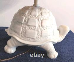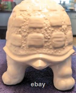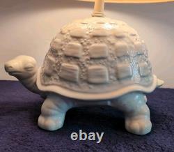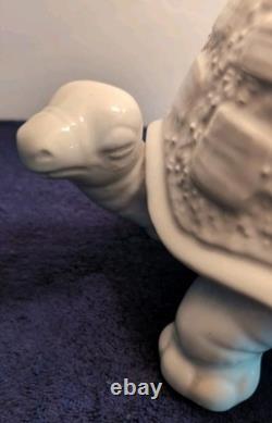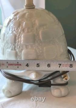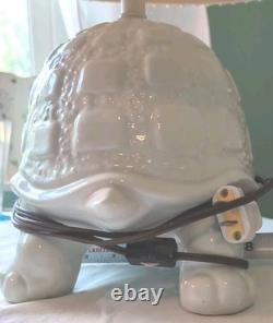 Add a fun and nostalgic touch to your space with this adorable Vintage Mid Century Modern Tortoise / Turtle Lamp! Made from white ceramic, this charming little guy has a whimsical, kitschy style that's perfect for vintage lovers and collectors alike. It's a corded electric table lamp that's as functional as it is eye-catching-great for a cozy reading nook, bedroom, or anywhere you want to add a bit of quirky charm. The Lamp itself is 13" on length, 8" wide and 8 high. With the lamp shade and hardware, the overall height is approximately 16.5.