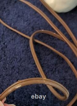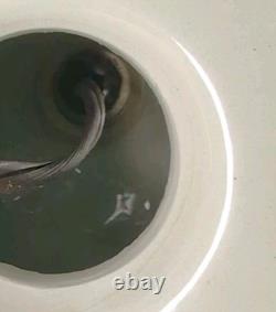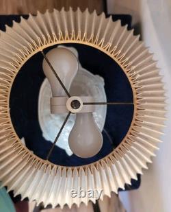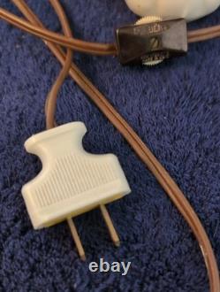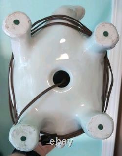 Please note that this is a vintage piece that has small manufacturing blemishes that can be seen under close scrutiny -such as small bumps in the glaze. Additionally, this appears to be the original lamp shade so it is a little dusty and there are a couple of spots on it as well as a small section of the plastic insert that is broken(Not visible from the outside). Please look at all the pictures and use them to help see condition and help with description. Most of my items come from local auctions, estate sales or closeout shops and I usually sell them as I acquired them.