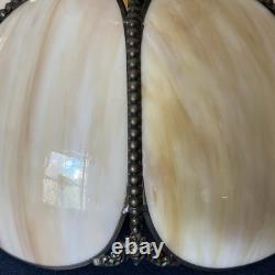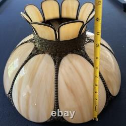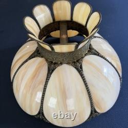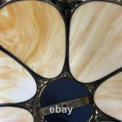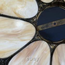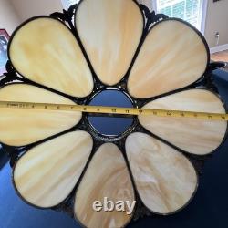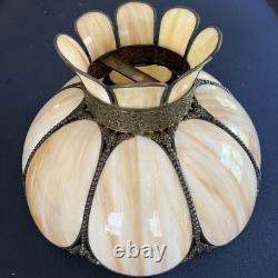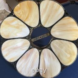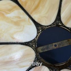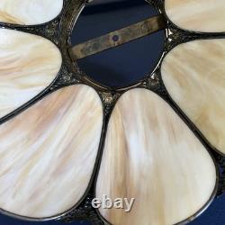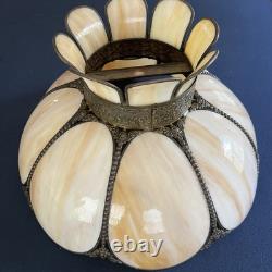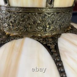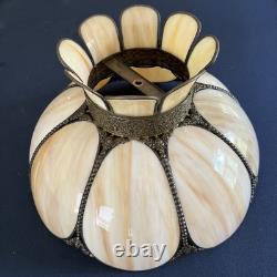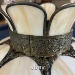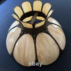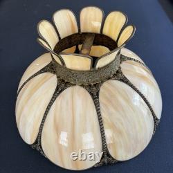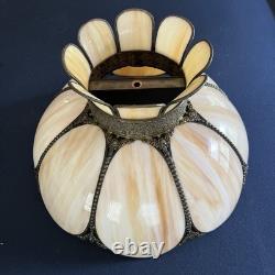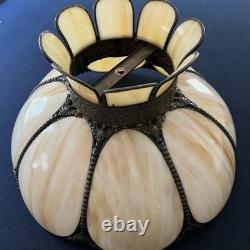 Style: Art Nouveau / Victorian Revival. Mount Type: Hanging Pendant or Table Lamp Base. All glass panels are intact with no chips or cracks. The brass has a warm aged patina consistent with age. A beautifully preserved example of period lighting design.